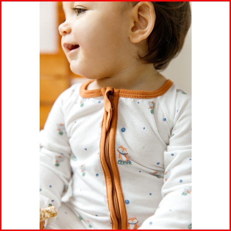 Kottonville - Setelan Baju Tidur Piyama Anak Bayi Essentials Azuki Zipper Sleepsuits Printed Color 0-2 Yrs Laki-laki Dan