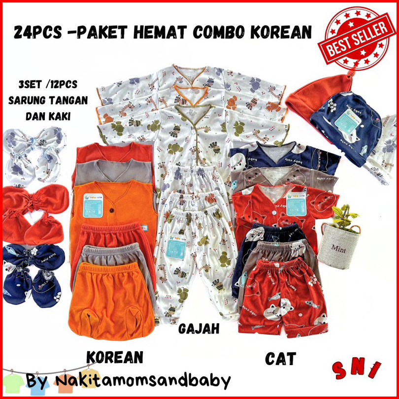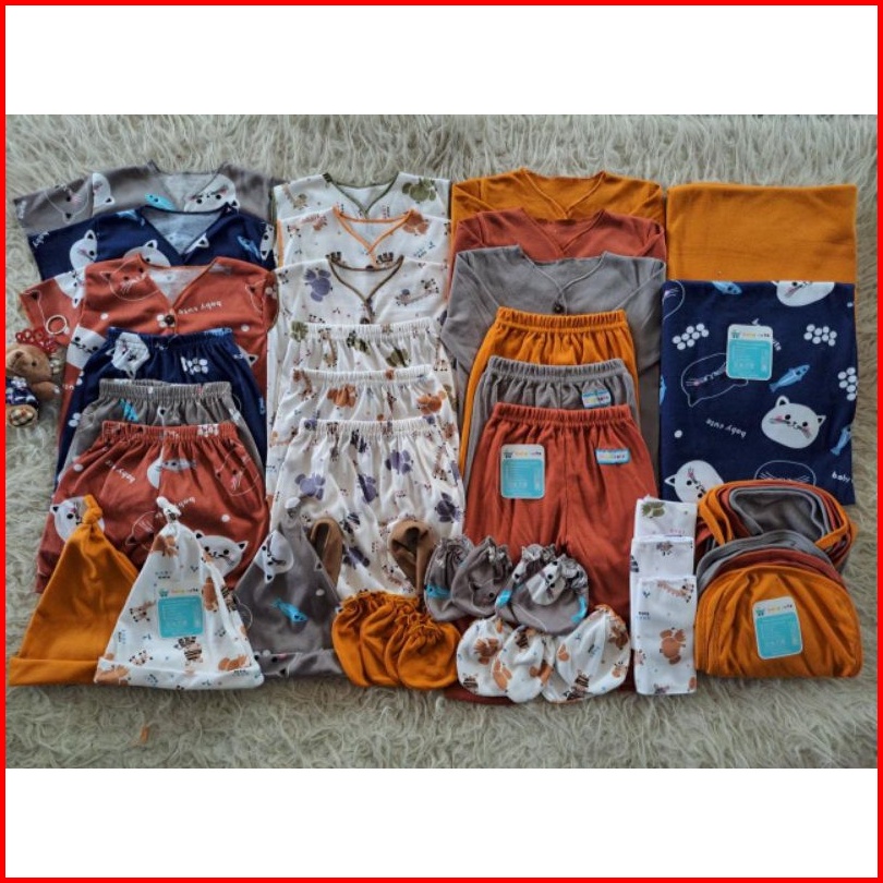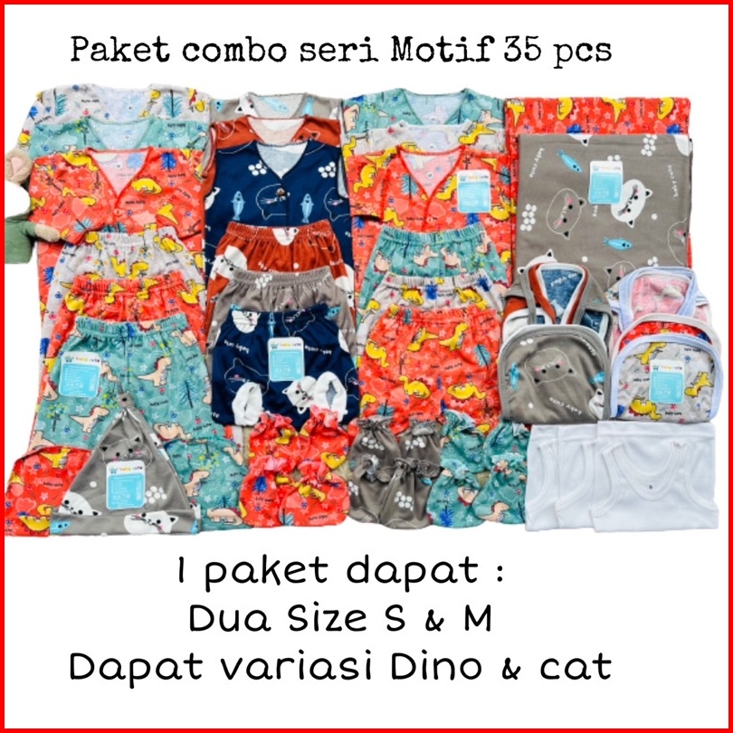 35pcs Paket Premium Printing Perlengkapan Baju Celana Bayi Topi Sarung Tangan Kaki Popok Bedong Bayi Baru Lahir 0-12 Bul