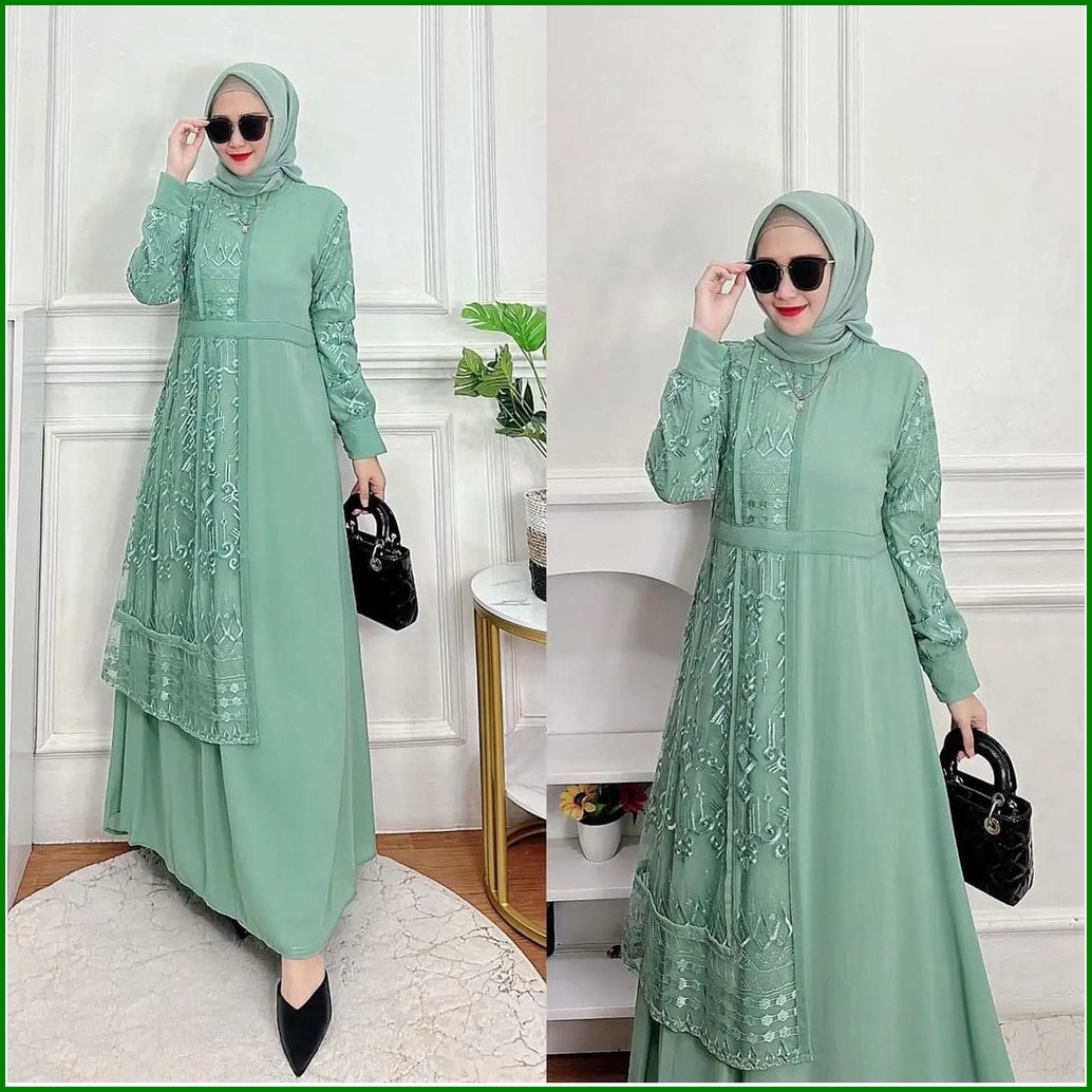 R.a - Rebecca Dress Gamis Muslim Matt Ceruty Babydoll Mix Brukat Full Puring Ootd Lebaran Fashion Terlaris