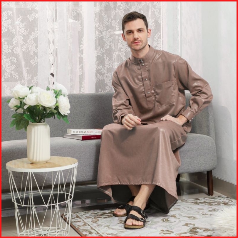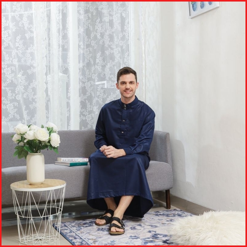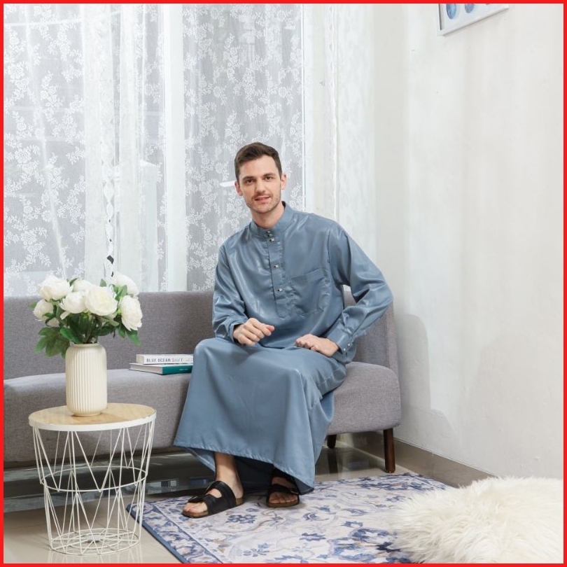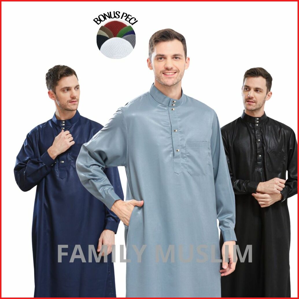 Family Muslim - Jubah Gamis Pria Usia Mulai 14 Tahun Dewasa Lengan Panjang Madani Navy