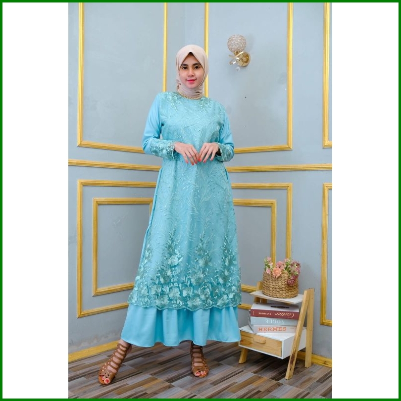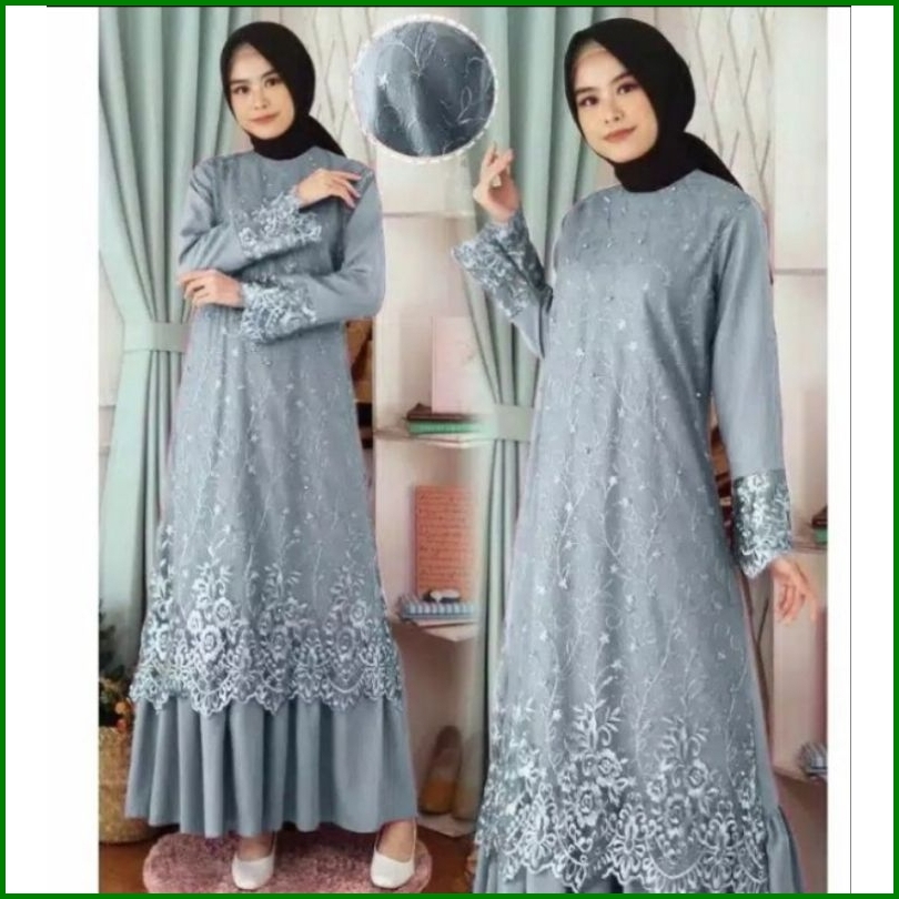 Gamis Pesta Model Terbaru Tile Mutiara Bunga Bawah Tebal