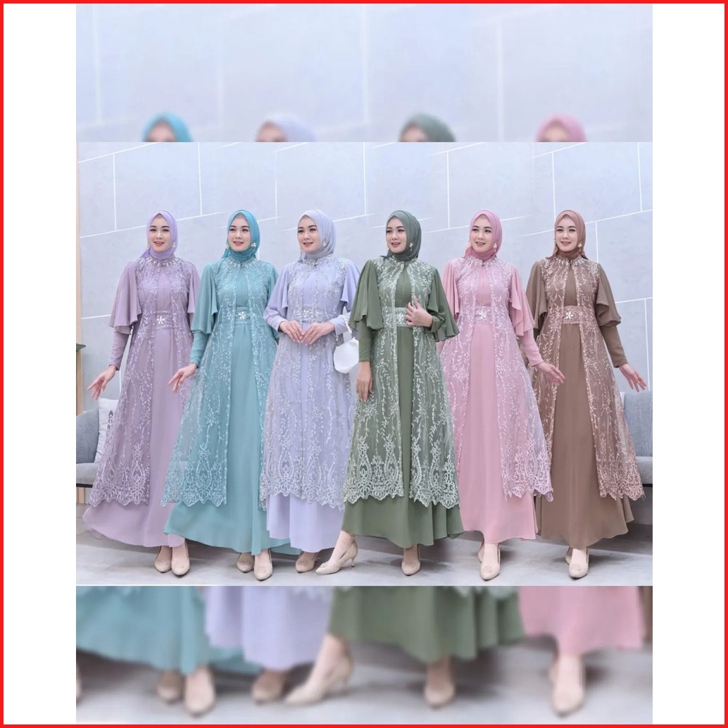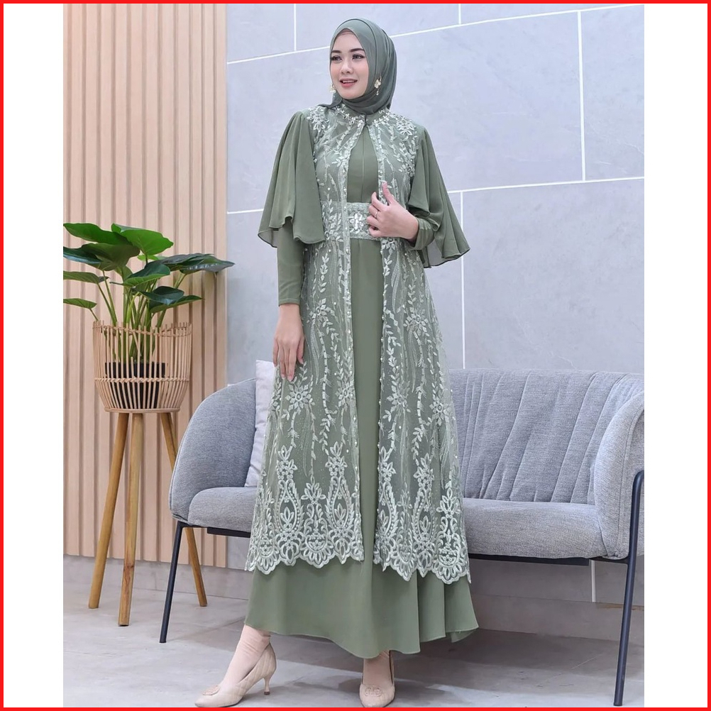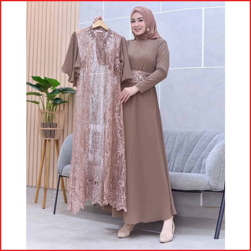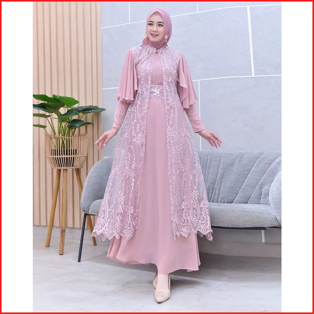 Vallina Outfit - Clarisa Maxy Dress Brokat Outer Pisahan Gamis Muslim Wanita Pesta Kondangan Premium Kekinian Terbaru