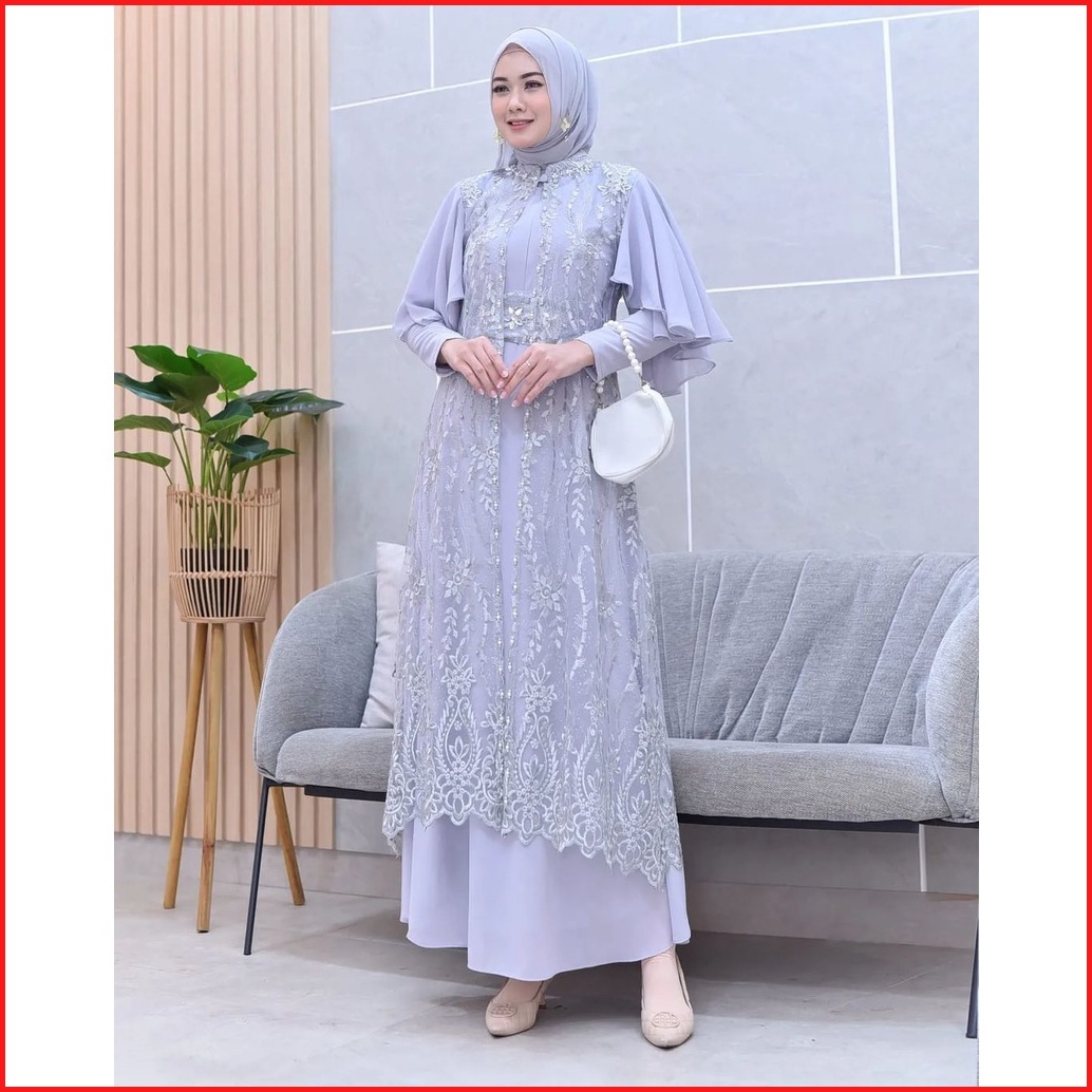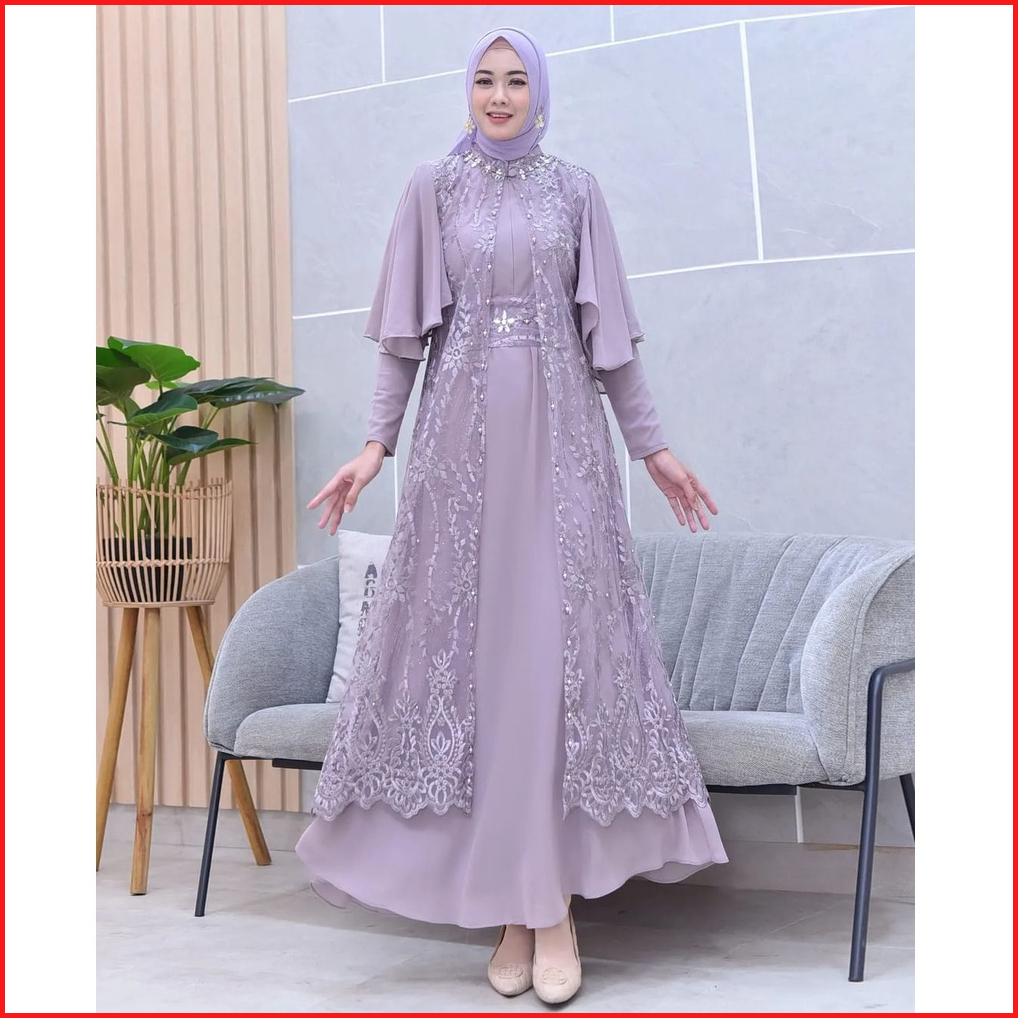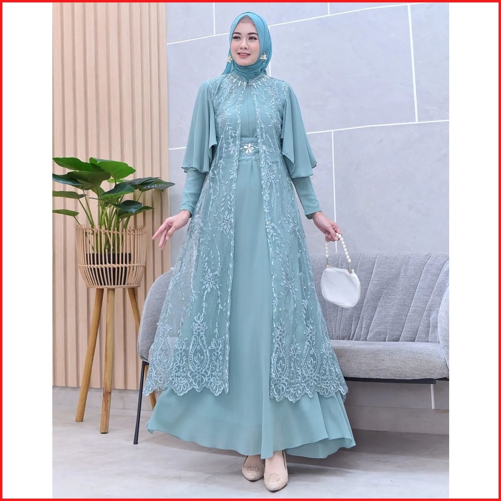 Vallina Outfit - Clarisa Maxy Dress Brokat Outer Pisahan Gamis Muslim Wanita Pesta Kondangan Premium Kekinian Terbaru