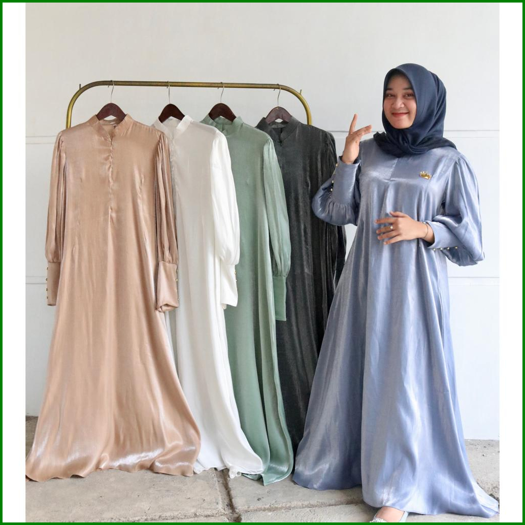 Shimer Silk Dress Alea Tangan Balon Muslim By Rsm Gamis Wanita Maxi