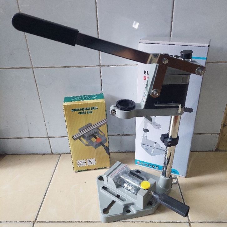 Paket Stand Drill Mesin Bor Tangan Alumunium Base + Vice Drill Press / Ragum