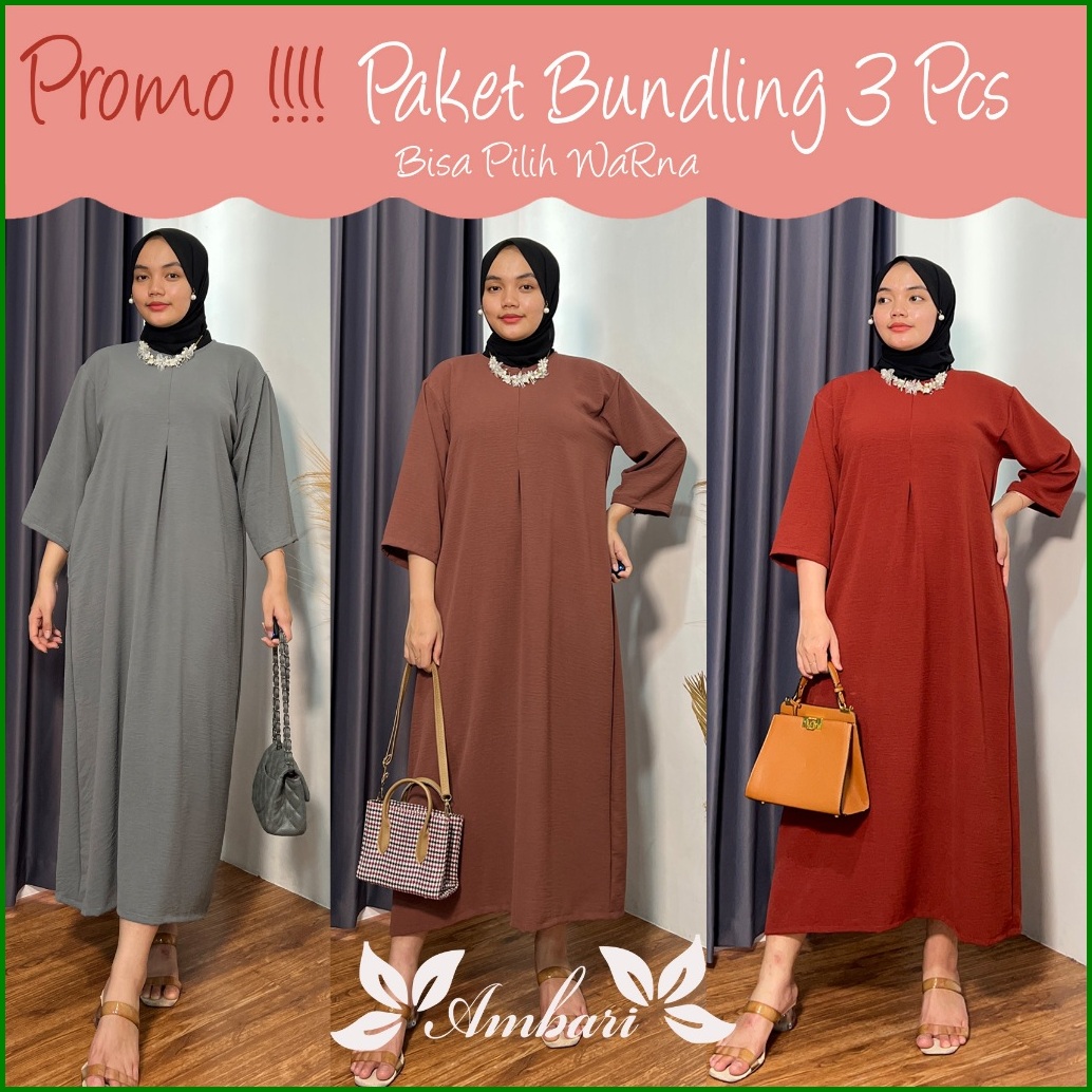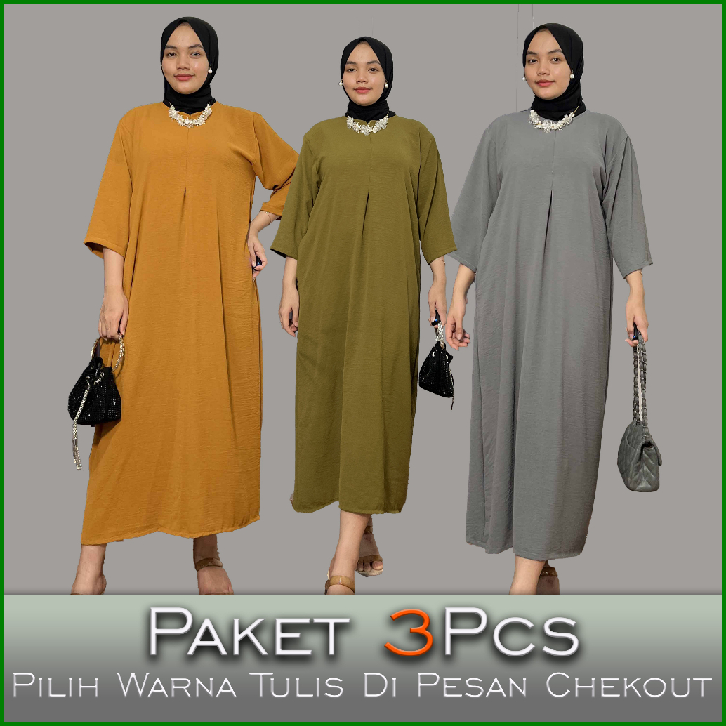 Paket 3pcs Gamis Daster 3 4 Crinkel Polos Wanita