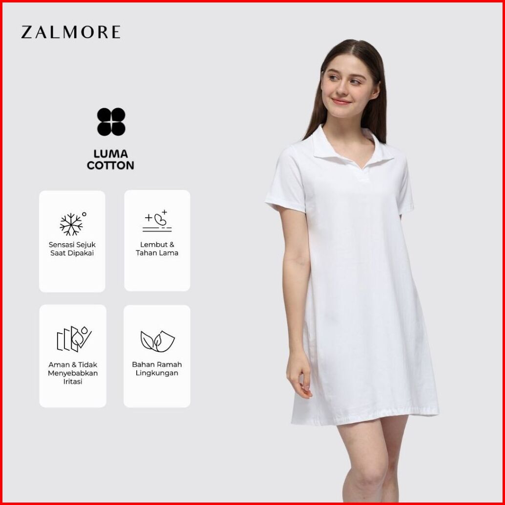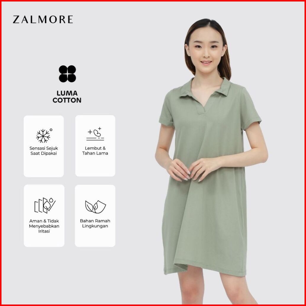 Zalmore Polo Dress Luma Cotton Premium - Dress Wanita Lembut Ringan Sejuk Anti Nerawang
