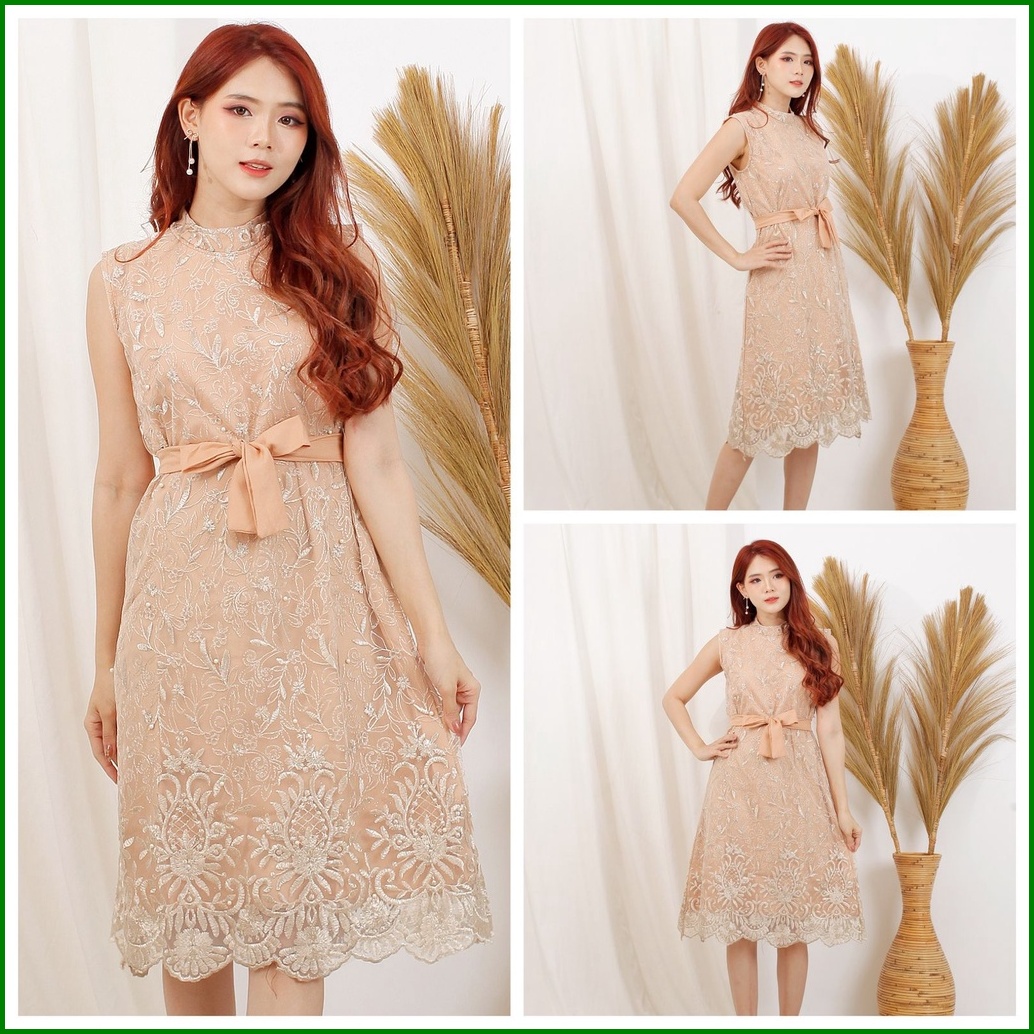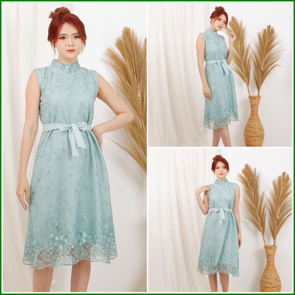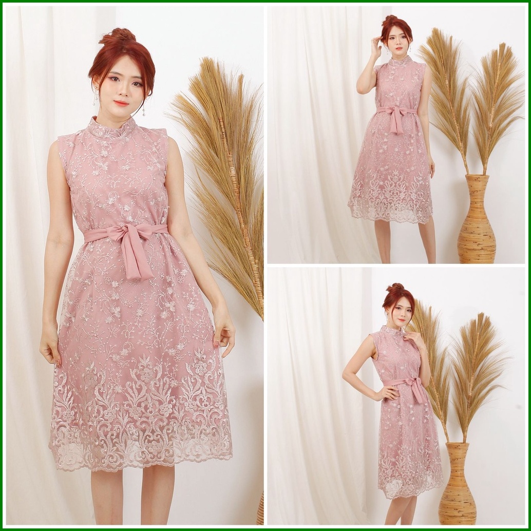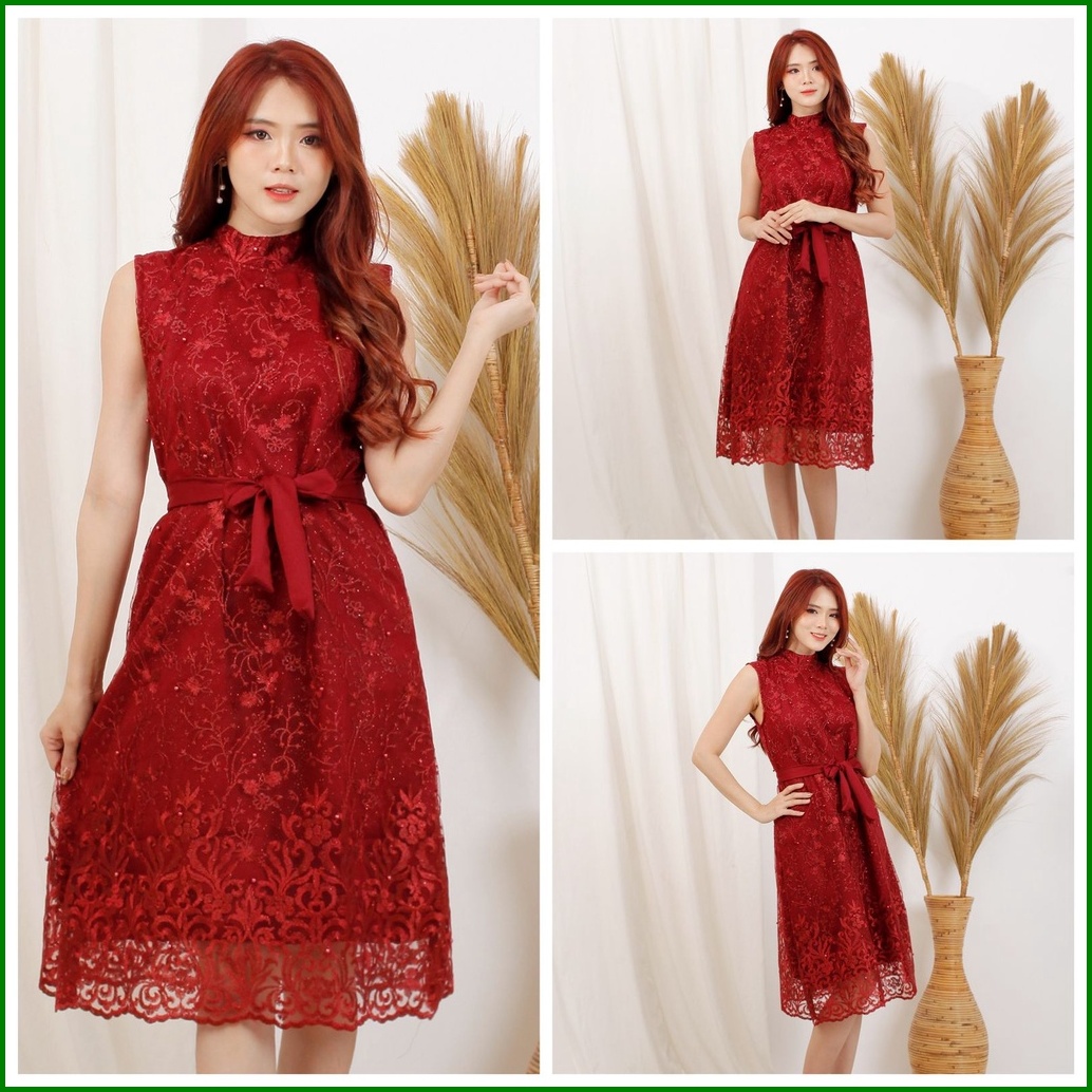 Dijamin Realpict Dress Chelsea Brukat Tile Bordir Gliter Brokat Tulle Tille Imlek Murah Pesta