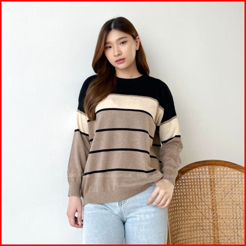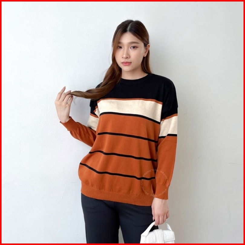 Amanda Knit Tops Atasan Rajut Katun Halus Adem Tangan Panjang Sweater Cewe Hijab Friendly