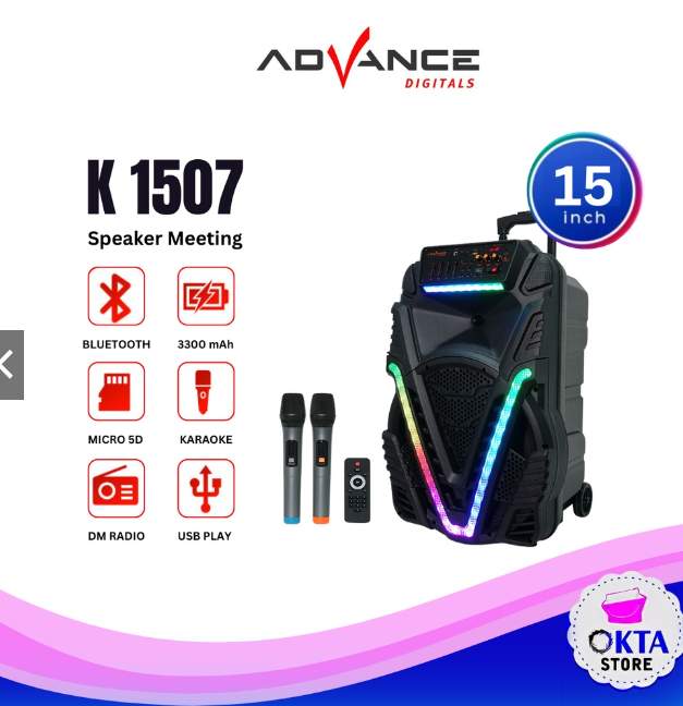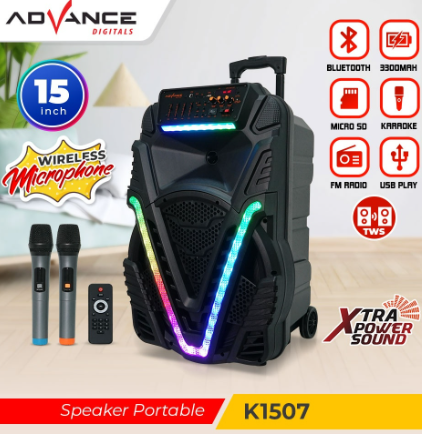 FREE MIC ADVANCE K1507 SPEAKER BLUETOOTH FULL BASS/AKTIF/TERBAIK KARAOKE/POLYTRON/SALON/HOME THEATER/BASS/MEETING 1 SET