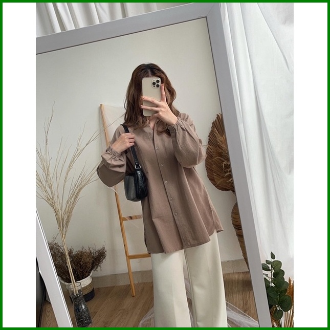 Garida Longshirt Fashion Kemeja Basic Oversized Atasan Lengan Panjang Blouse Wanita Atasan Wanita Outer Nyaman Kemeja Ka