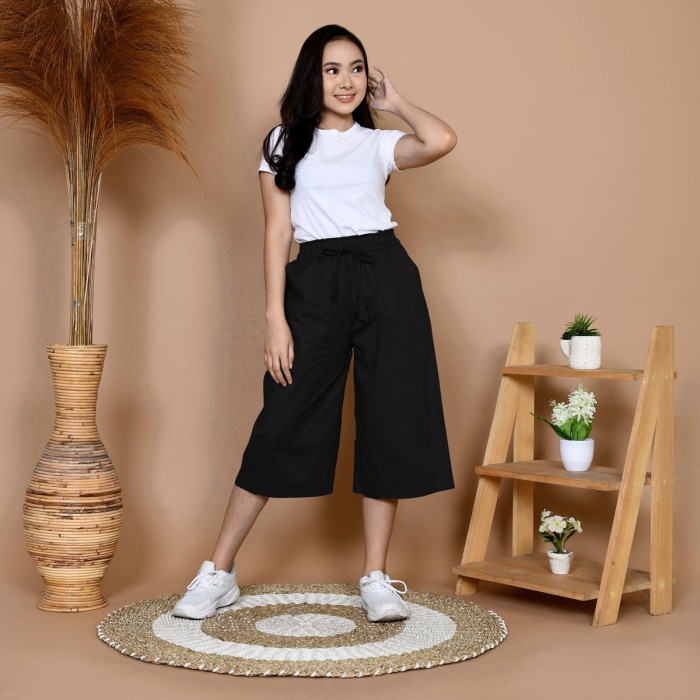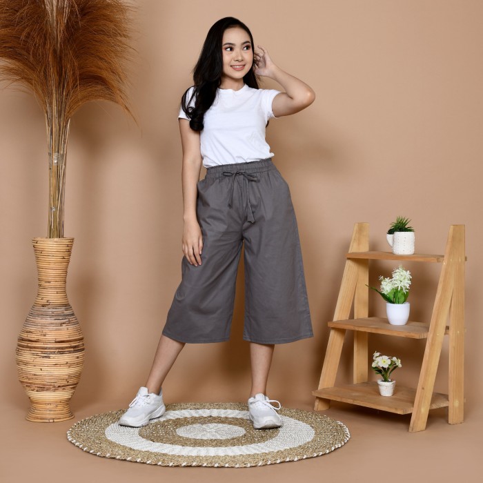 CELANA KULOT PENDEK WANITA POLOS CELANA PENDEK 7/8 KATUN STRETCH - ABU-ABU