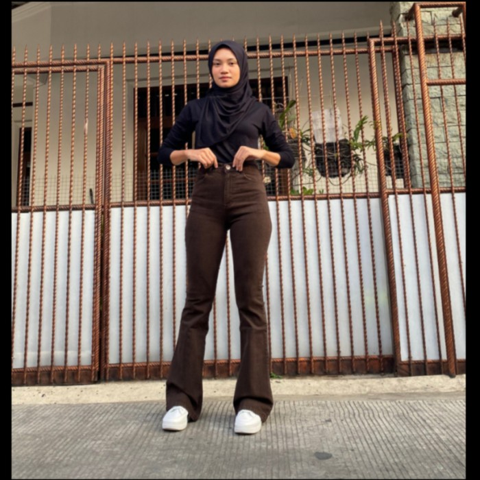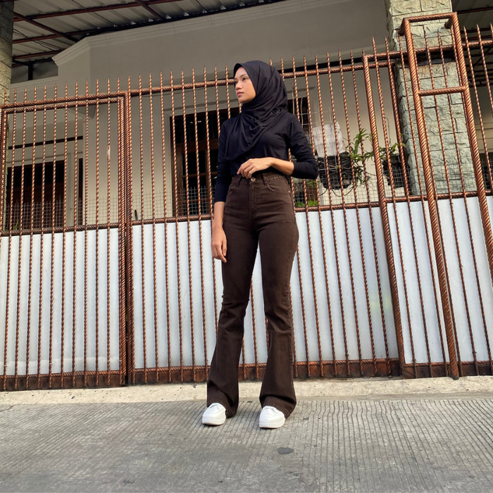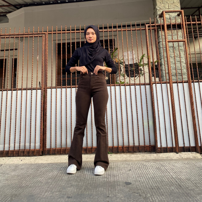[MCO] CELANA JEANS HIGH WAIST CUTBRAY WANITA PREMIUM DENIM - COKELAT, 27
