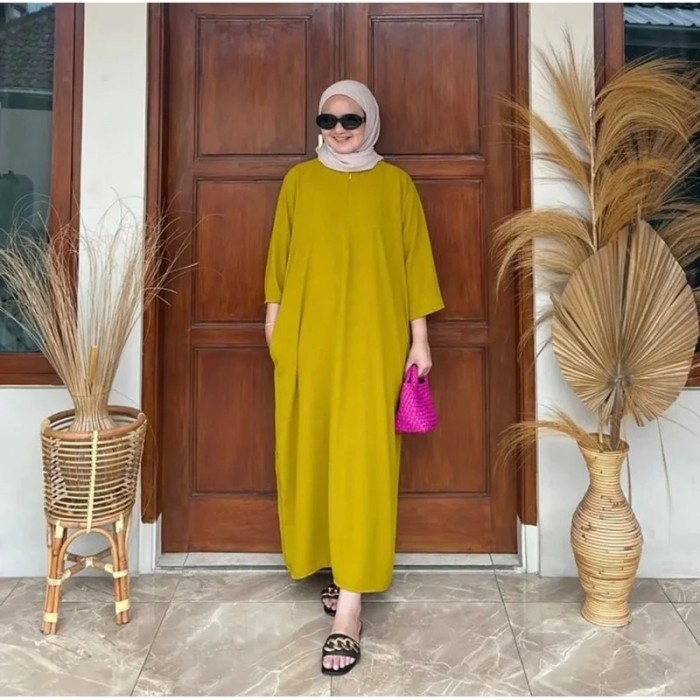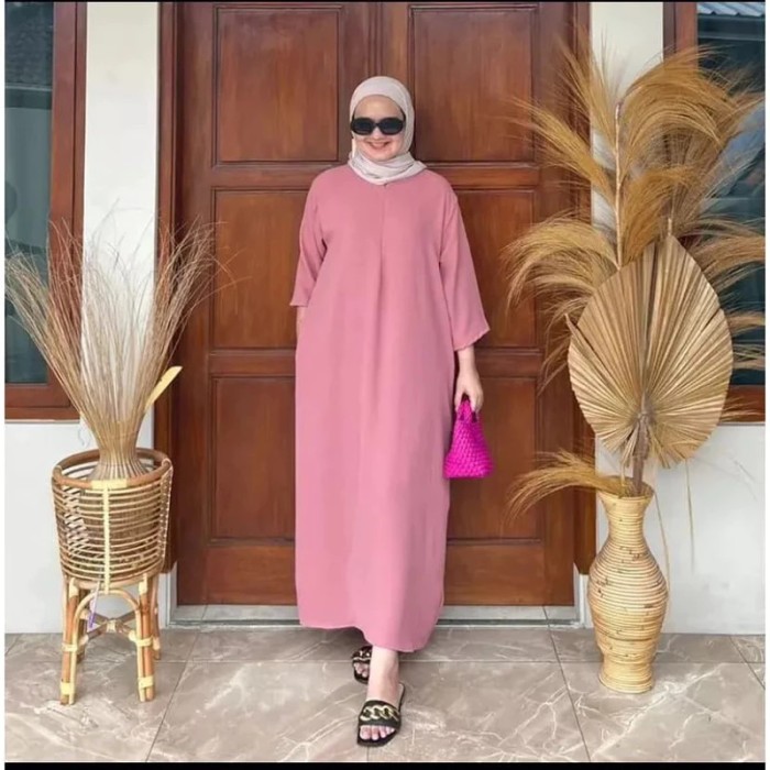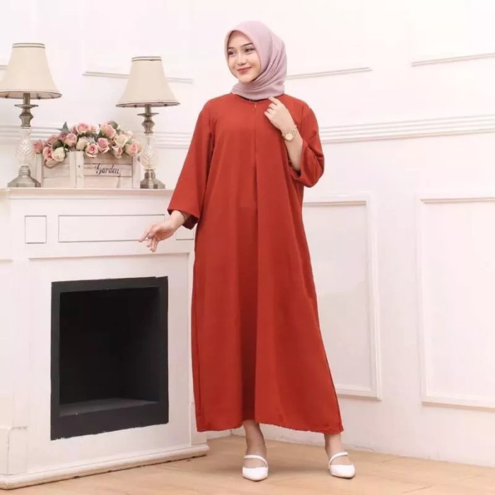 LONG DRESS ZEA AUREL CRINKLE AIRFLOW SEMI ABAYA BAJU BUSUI - ZEA MARUN
