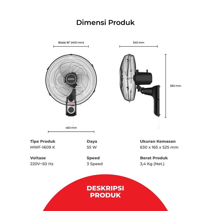 MASPION MWF 1609 K / WALL FAN 16 IN / KIPAS ANGIN DINDING / MWF1609K