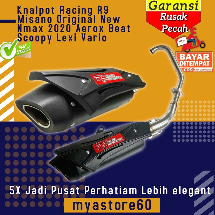 Knalpot Kenalpot Racing R9 Resing Recing Misano Original New Nmax 2020 Aerox Beat Scoopy Lexi Vario