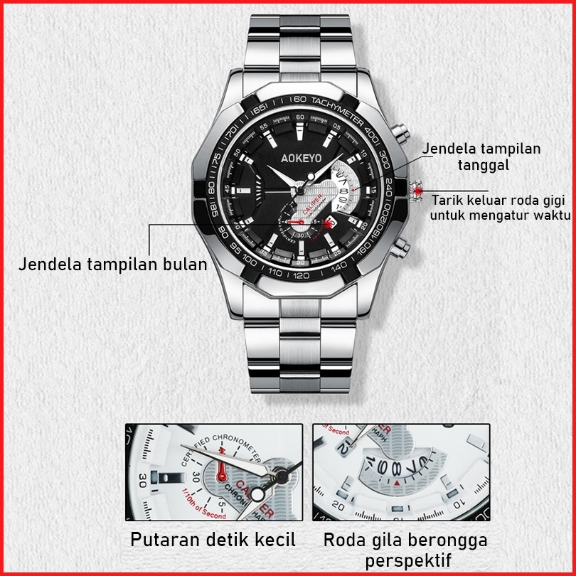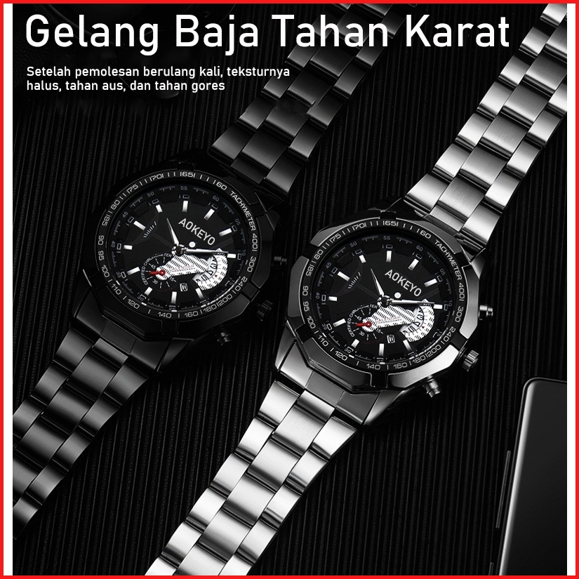 Aokeyo S001 Jam Tangan Pria Anti Air Original Luxury Stainless Steelfree Box Kartu