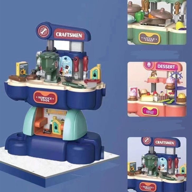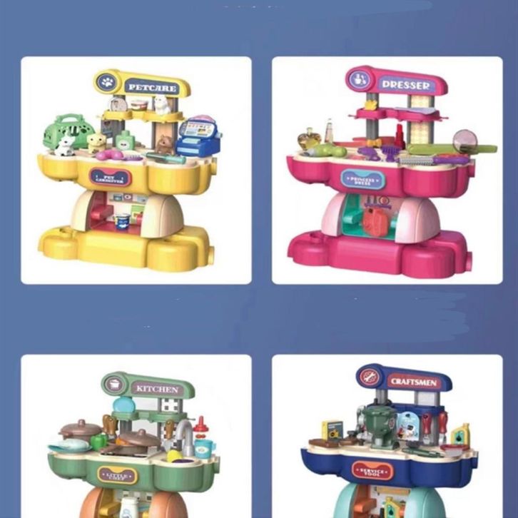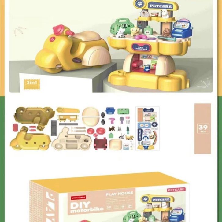 Mainan Kitchen Motor Play Set Rakit 2 in 1 Lepas Pasang / Mainan Masak / Pet Shop / Supermarket / Bengkel / Rumah Sakit