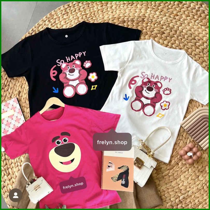 Lotso So Happy Black White L Baju Kaos Tshirt Tumblr Tee Korea Bkk Hitam Putih Oversize Cute
