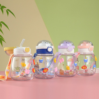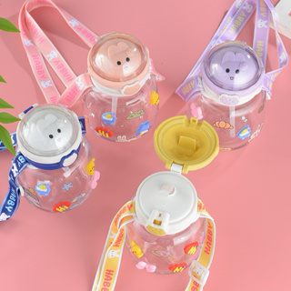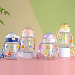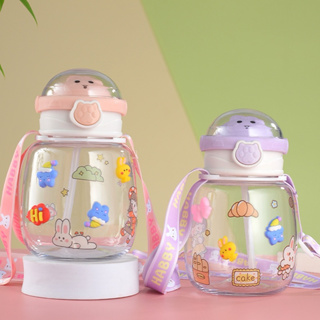 Ax 379 Botol Minum Plastik Transparan Tenteng Kain I Botol MInum Tutup Motif Kelinci + Klik + Putar I 450ML I BPA FREE