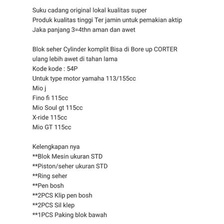 Blok seher+Piston kit Mio j Fino Fi 115 Mio GT 115 Xride 115 Mio Soul GT115 (54P) Ori lokal