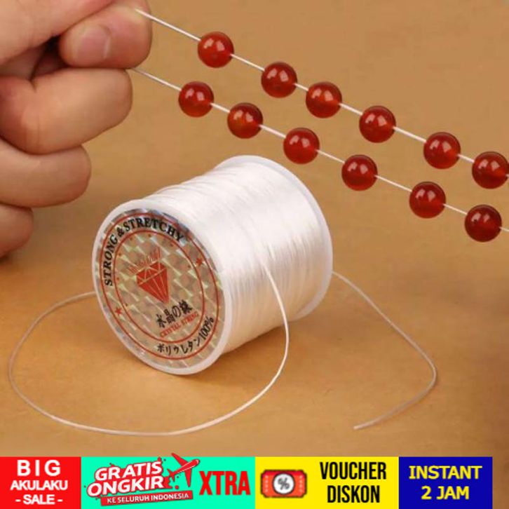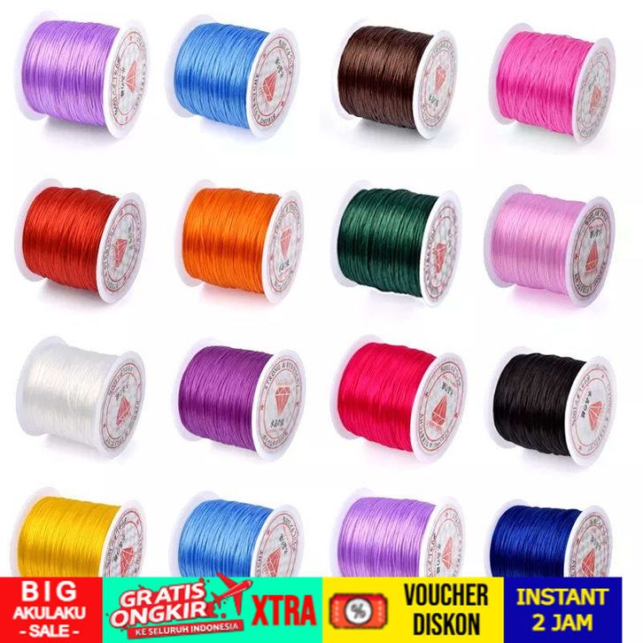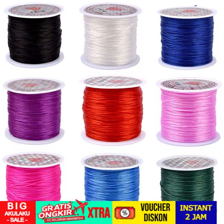 TANPA DP Tali Benang Karet Elastis 60 Meter Super Kuat Untuk Manik Manik Membuat Gelang Dan Kalung
