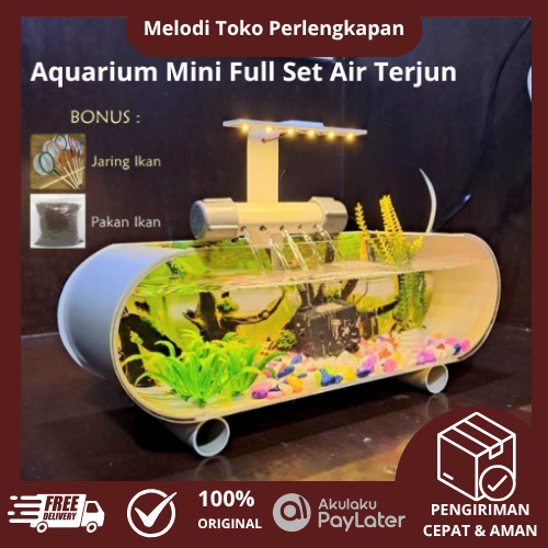 Aquarium Mini Kaca Akrilik Fullset Akuarium Kecil Besar Ikan Hias Full Set Pompa Filter Lengkap Lampu Led Murah