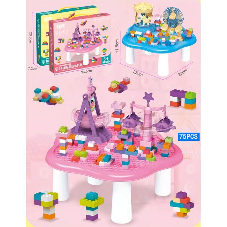 Promo 75pcs Mainan Briks Meja Balok Susun Theme Park / Mainan Balok Susun Tema Taman Bermain / Mainan Edukasi Anak