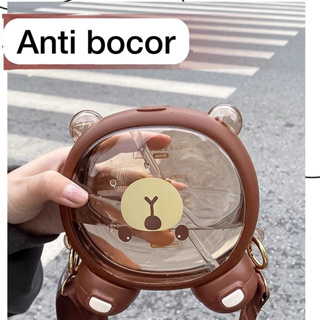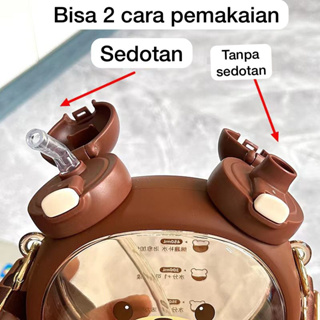 Botol Minum Plastik 700ML Motif Beruang 2 Cara Minum Lucu +Tali Panjang & Sticker 2D 307 3208 4706