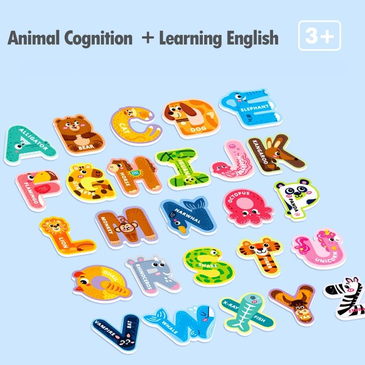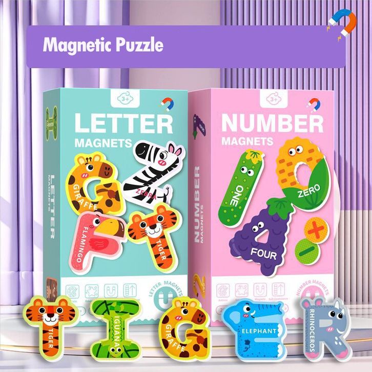 Promo Magnetik Kepingan Puzzle Belajar Huruf Angka Karakter Lucu / Belajar kosakata Bahasa Inggris / Mainan Edukasi Anak