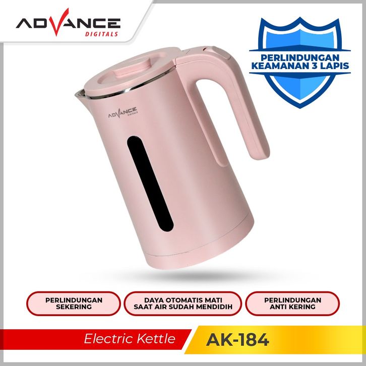 ADVANCE AK184 Teko Listrik 1.8 Liter Stainless Steel 304 Food Grade Garansi Resmi 1 tahun