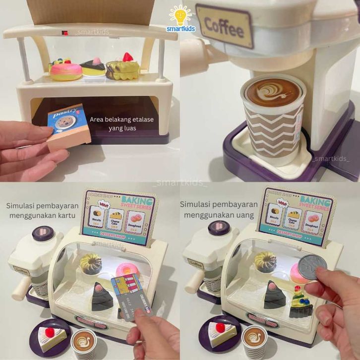 Mainan Anak Kopi Mesin Set Donat Kue Masak Masakan Oven / Coffee Machine Maker Cake Shop / Multifungsi Musik Bunyi Cahay