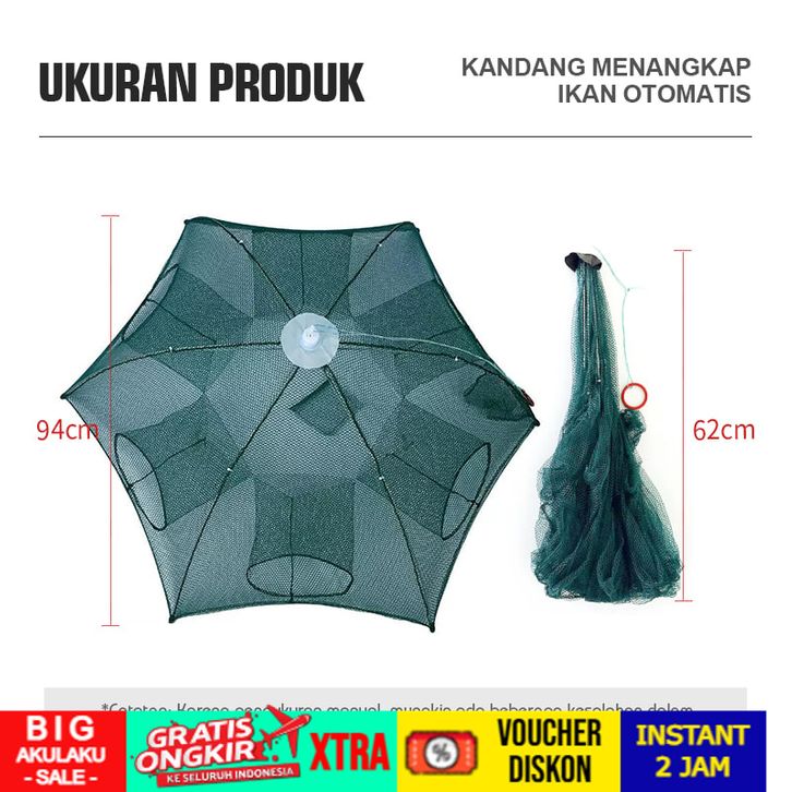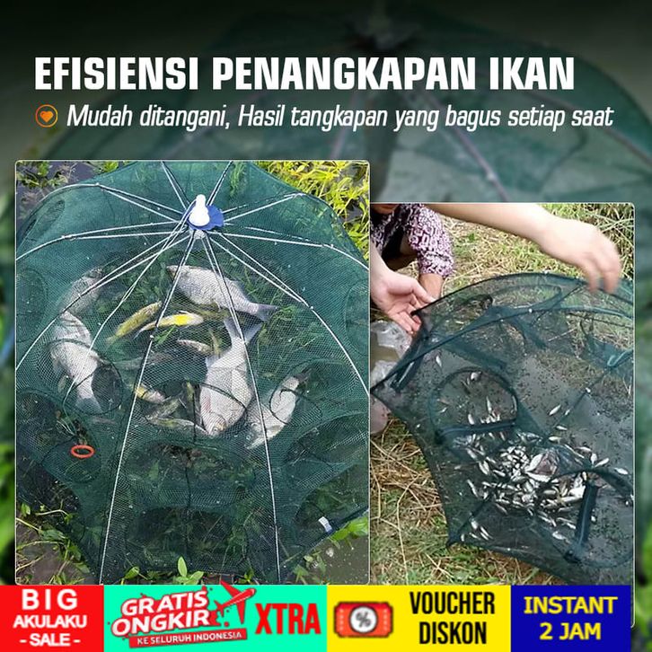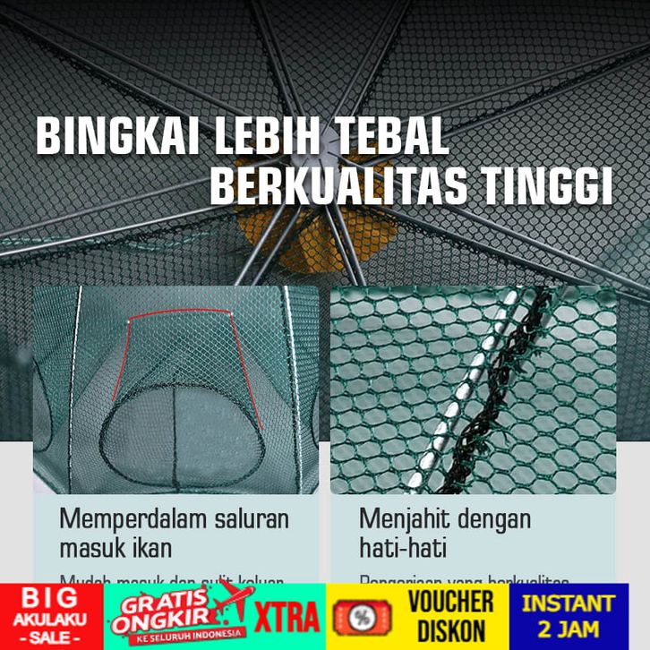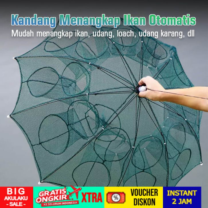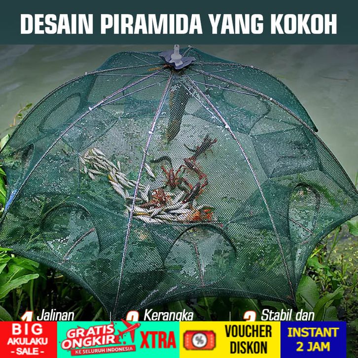 TANPA DP Perangkap Bubu Payung 8 Lubang Alat Jaring Pancing Jala Ikan Udang Kepiting Lele Lobster Sungai Laut Danau