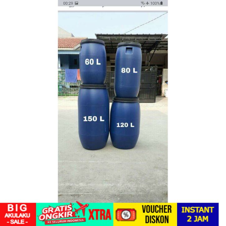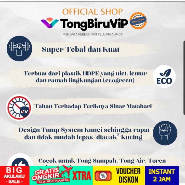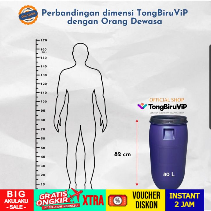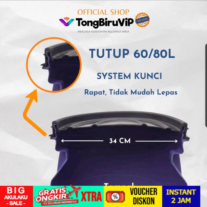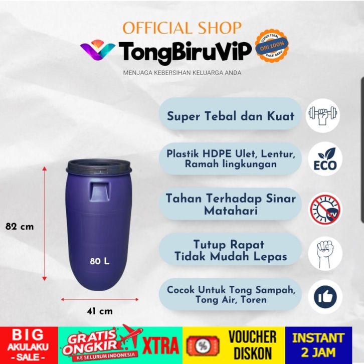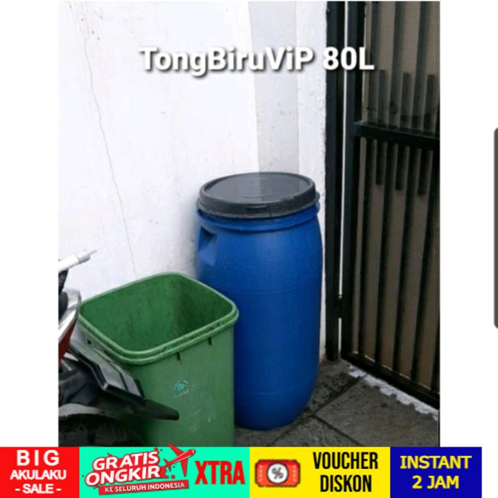 TANPA DP 80L Tempat Sampah Biru/ Tong Air Biru SUPER TEBAL & KUAT 80L (termasuk Tutup)