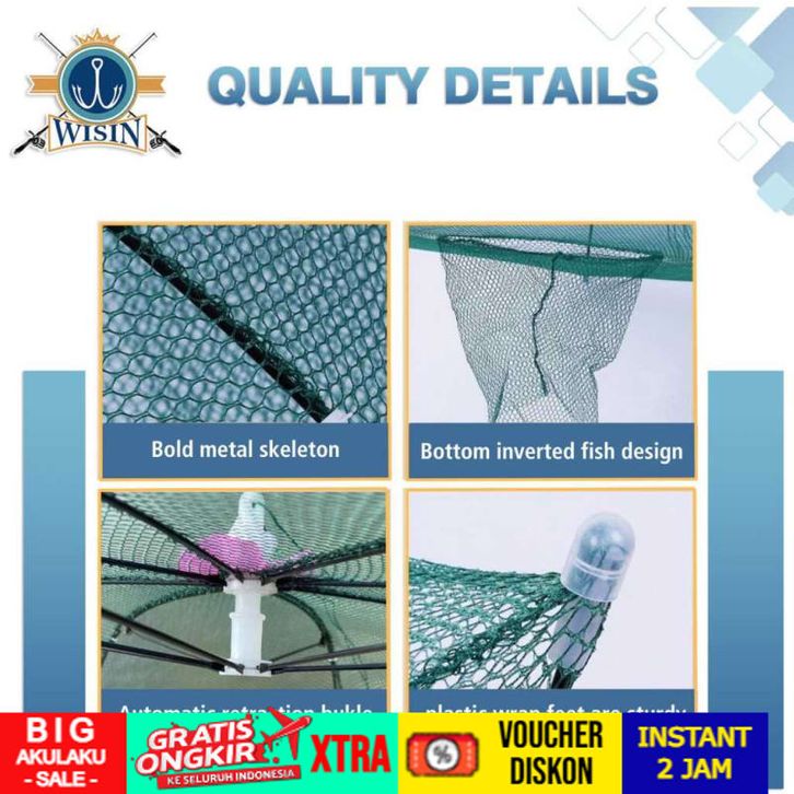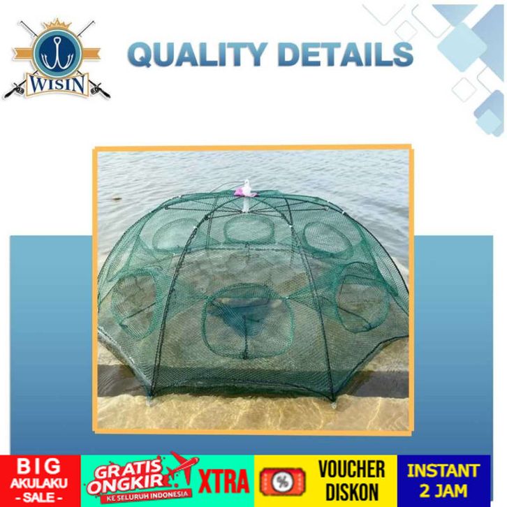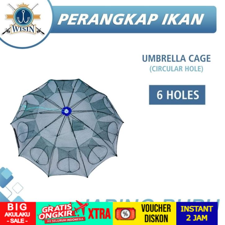 TANPA DP WISIN Perangkap Ikan Bubu Payung Multi Hole (6 Lubang) Jala Pancing Semua Biota Kecil Laut, Danau, dan Sungai