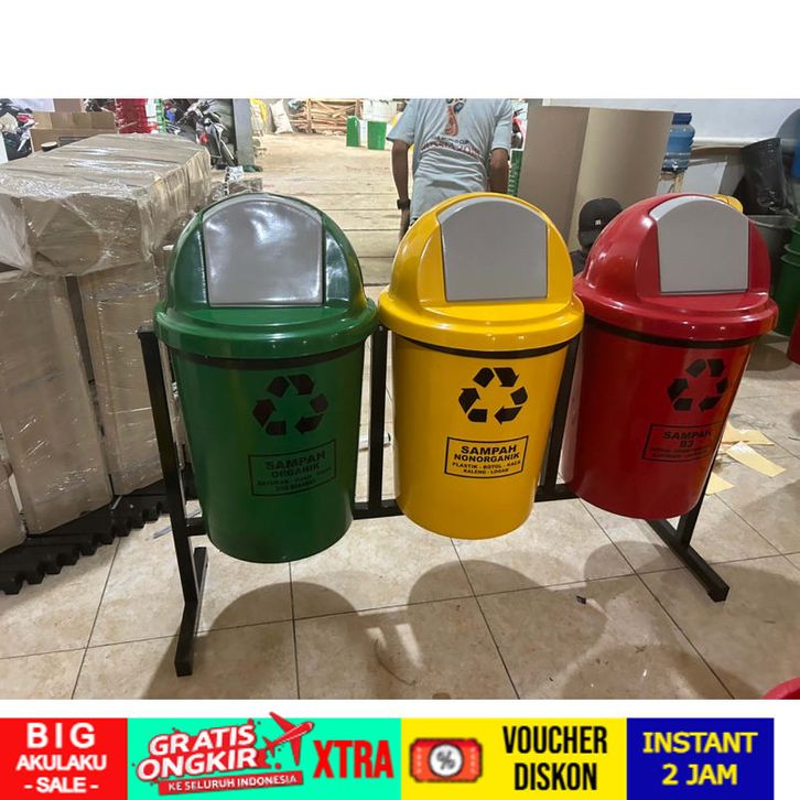 TANPA DP tempat sampah 3 pilah kapasitas 80 litter tempat sampah gantung, material fiberglass