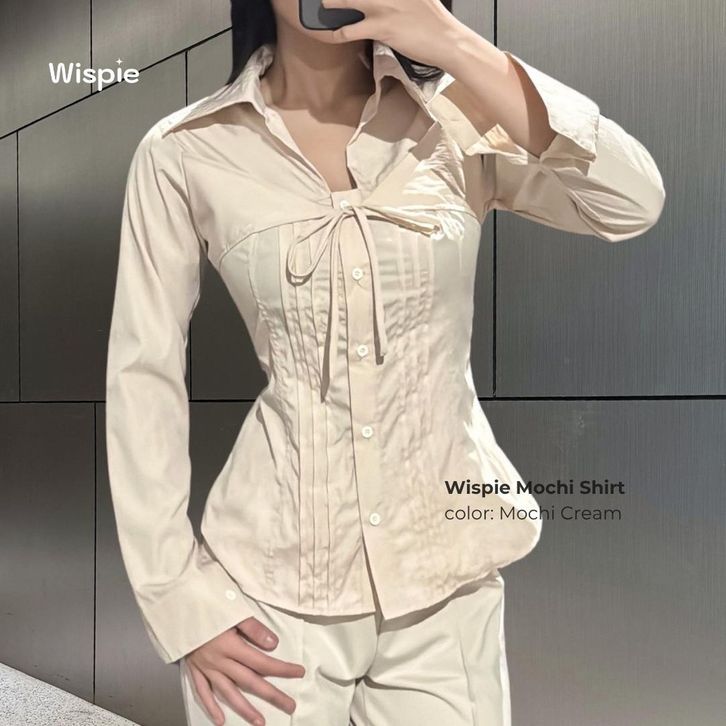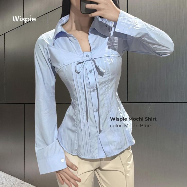 KEMEJA WANITA TERBARU DAN KEKINIAN WISPIE MOCHI SHIRT LENGAN PANJANG TALI PITA SLIM FIT SOFT TOUCH PARACHUTE