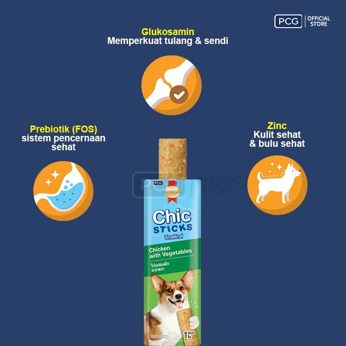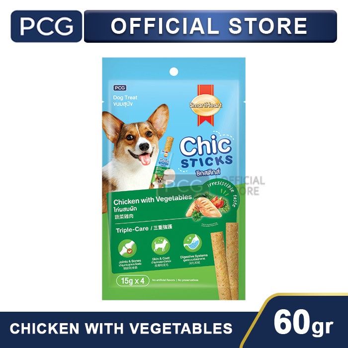 MULTIPACK 2 PCS Cemilan Anjing SmartHeart Chic Stick Dog Chicken With Vegetable 60gr