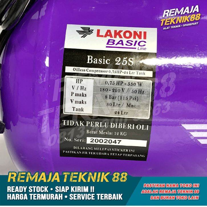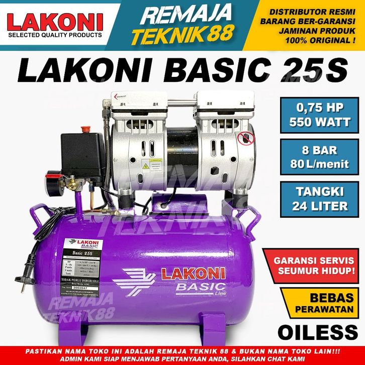 KOMPRESOR ANGIN OILESS LAKONI BASIC 25S / KOMPRESOR UDARA PORTABLE SILENT BASIC 25 S / 0,75HP