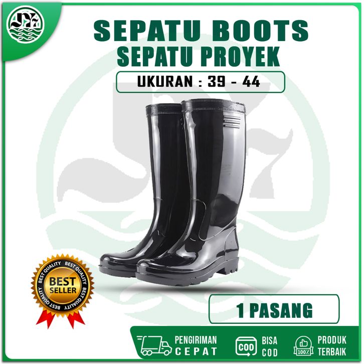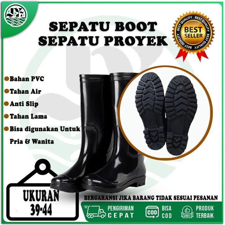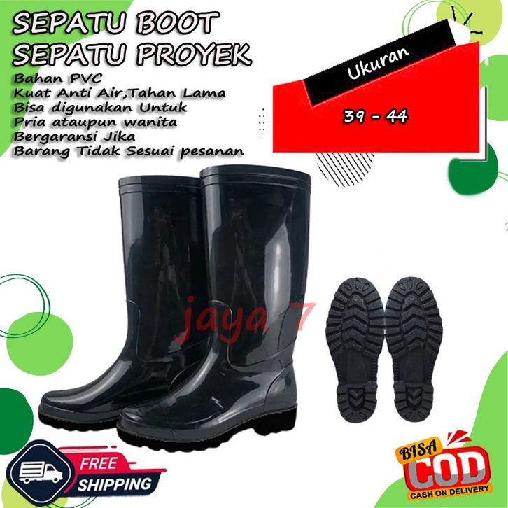 SEPATU BOOTS HITAM JEEP / SEPATU BOOTS KERJA PROYEK PVC MURAH / SEPATU SAFETY BOOTS PRIA DAN WANITA