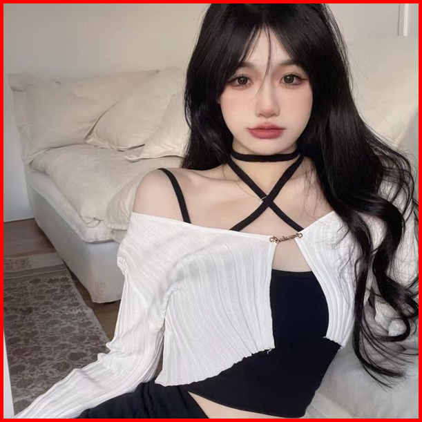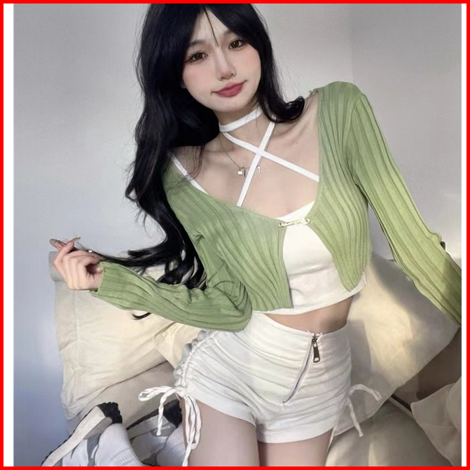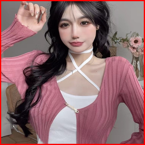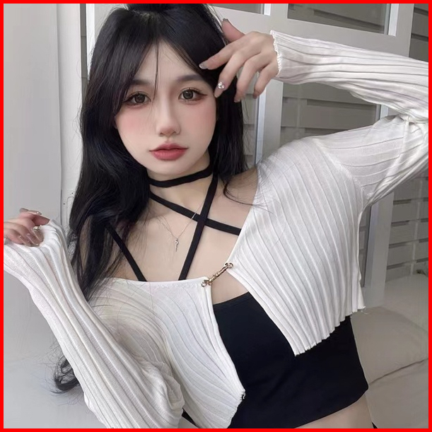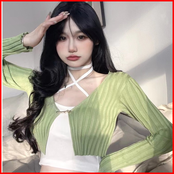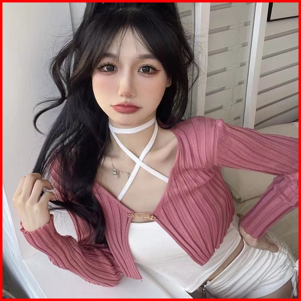 Pin Bolero Cardigan Rajut Wanita Oversize Korea Polos Lengan Panjang Sexy Crop Outer