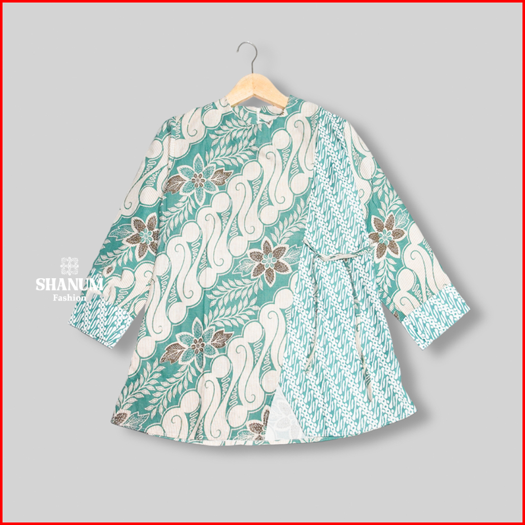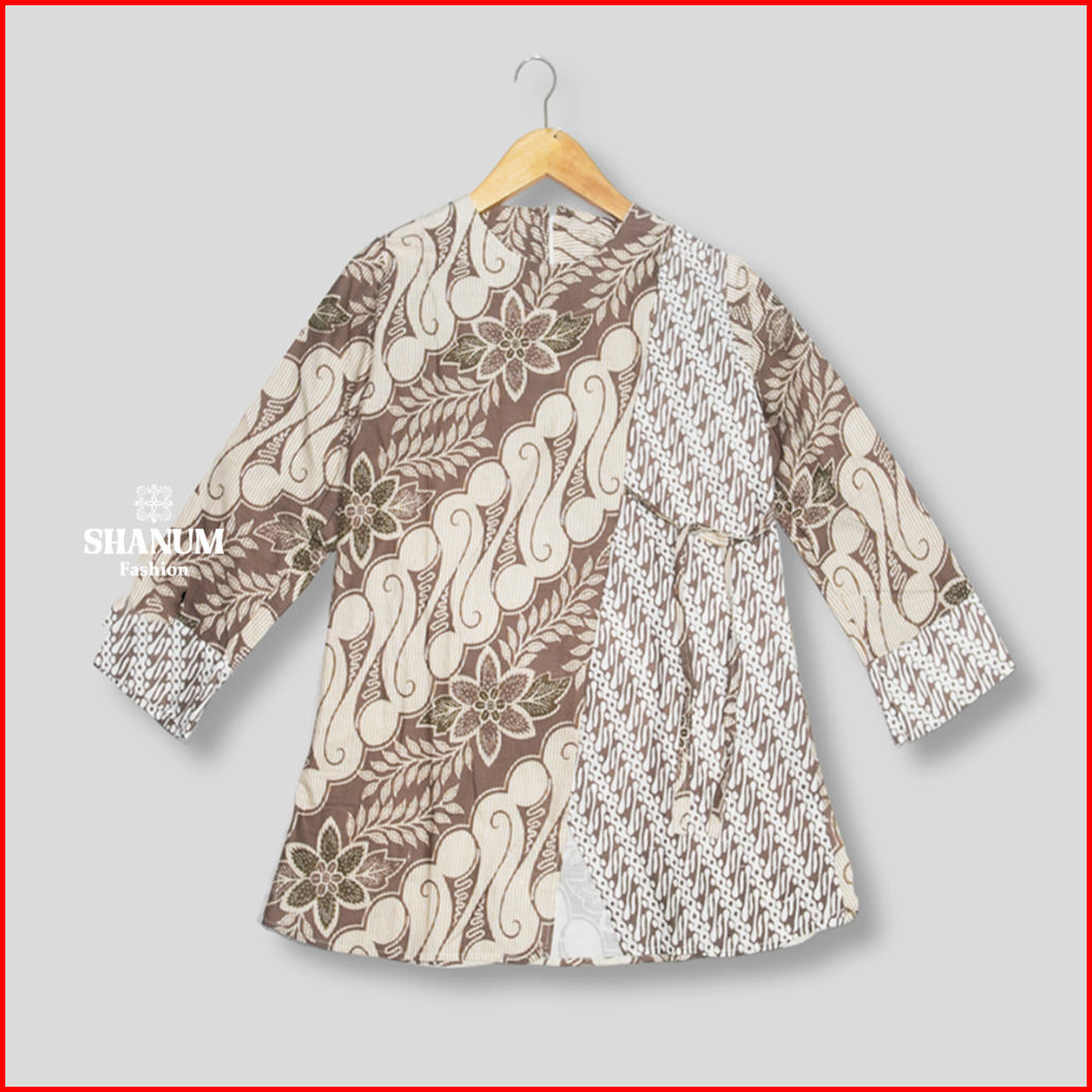 Shanum Batik Wanita Modern Kerja Lengan 3 4 Kancing Depan Bahan Katun Premium Kombinasi Polos Blouse Monalisa Genes Peka