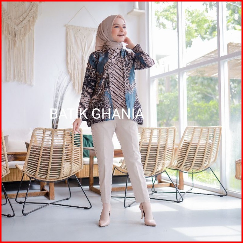 Batik Wanita Modern Atasan Batik Couple Batik Kantor Lengan Panjang Motif Sekar Jagad By Batik Ghania