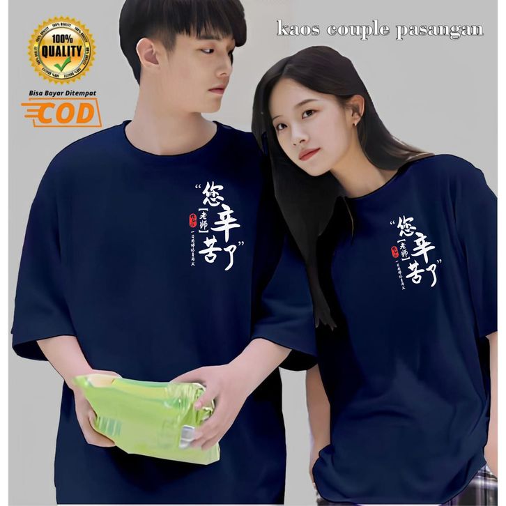 Baju Kaos Distro Couple Pacar Pria Wanita Tulisan Kanji Dewasa Lengan Pendek Katun Combed 30s Terbaru / Kaos Kapel Pasan