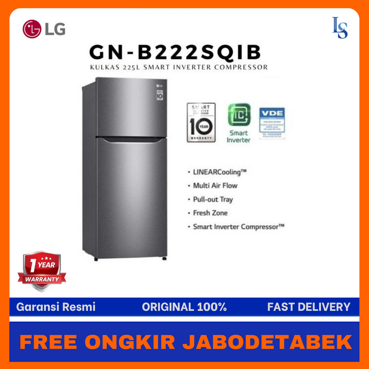 FREE ONGKIR JABODETABEK - LG GN-B222SQIB Kulkas 2 Pintu 225L Smart Inverter Compressor