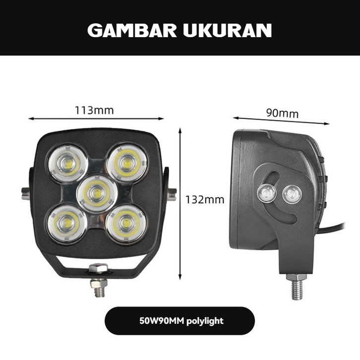 Mipanda Lampu Mobil Lampu tembak sorot truk off-road 50 watt dotrex 5 mata lampu sorot truk 12/24V setebal 8.2 cm