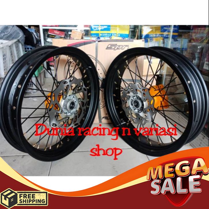 Paket Velg KLX 150 DTracker 150 Velg Supermoto Sumo 300 350 ring 17 jari jari sama piringan distel