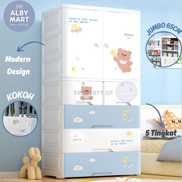 LEMARI PAKAIAN PLASTIK ANAK Alby Mart Lemari Pakaian Anak Jumbo Plastik Lemari Baju Bayi Susun Clothes Wardrobe Plastic