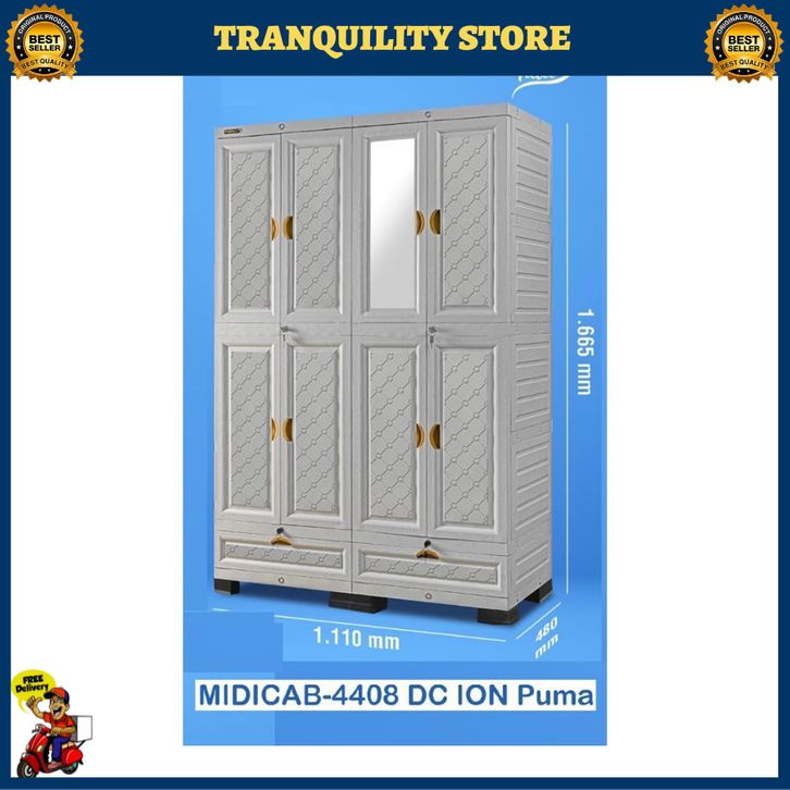 NAPOLLY Lemari Baju Pakaian Plastik Berkualitas 2024 4 Susun Jumbo Karakter Gantung 3 Pintu Sliding Minimalis Modern
