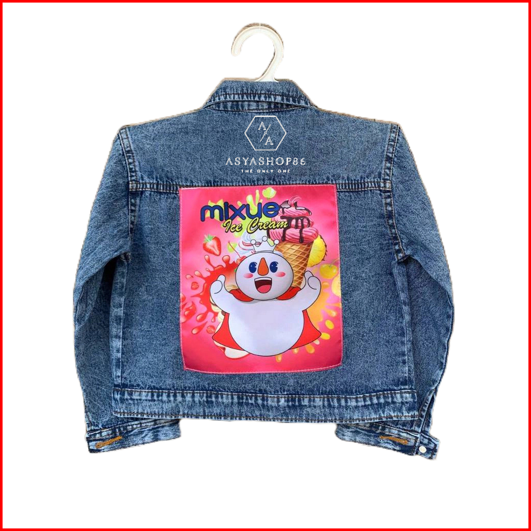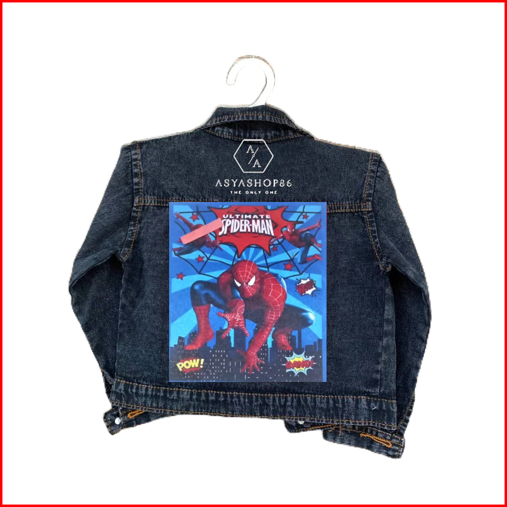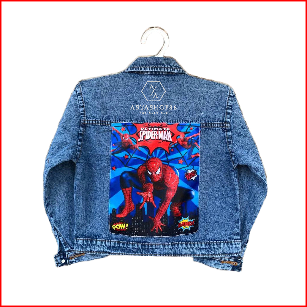 Jaket Jeans Anak Umur 1-8 Tahun Gambar Pita Belakang Warna Snow Wash Jacket Superhero - Bear